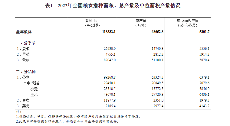 国家统计局:2022年全国粮食产量稳中有增